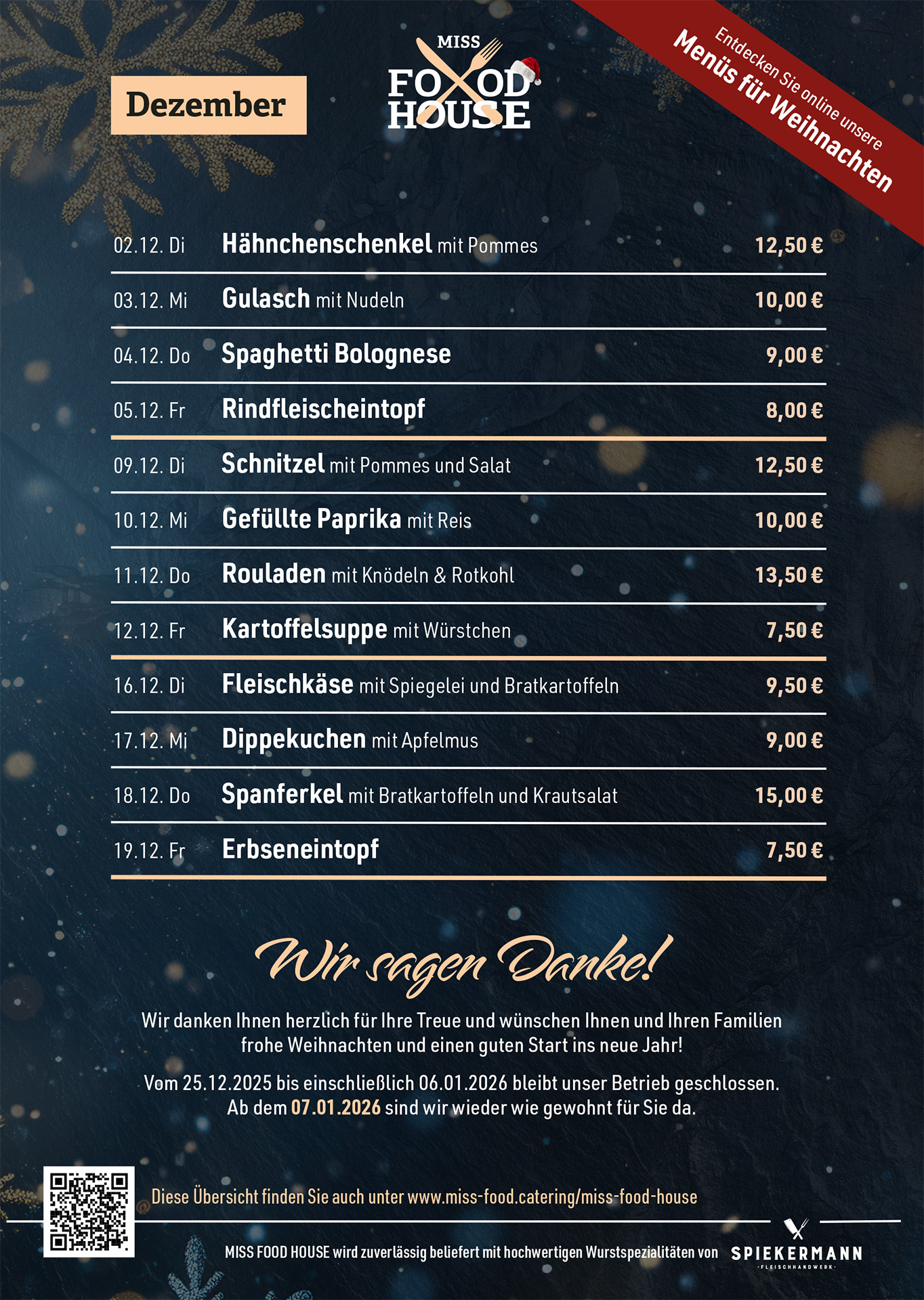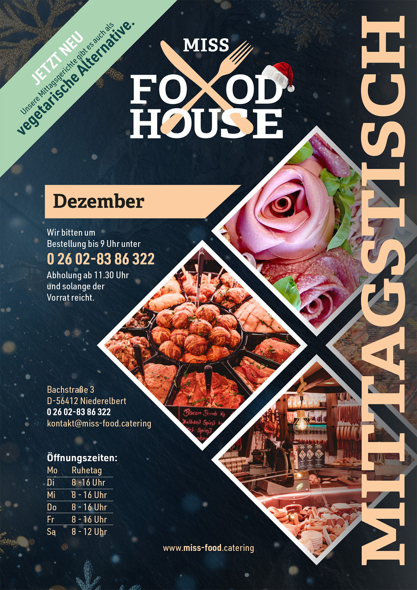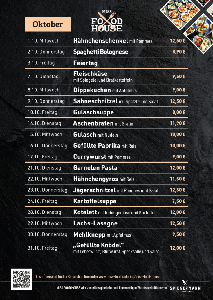 Entdecken Sie in der Bachstraße ein neues kulinarisches Highlight: Das MISS FOOD HOUSE bietet frische, hochwertige Speisen, einen täglich wechselnden Mittagstisch, Catering sowie Fleisch- und Wurstspezialitäten. Mit der Übernahme der traditionsreichen Metzgerei Kilian hat Michaela Rasch einen Treffpunkt für Genuss und Begegnung geschaffen. Ob für den schnellen Einkauf oder Ihr nächstes Event – hier wird Qualität mit Leidenschaft serviert!